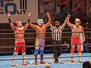 秋山準 / U・ドラゴン / カーベル伊藤 vs 大森隆男 / 佐藤光留 / 無宿の「赤虎」
