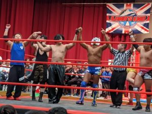 丸山敦 / TAJIRI / 佐藤光留 vs U・ドラゴン / 鈴木鼓太郎 / カーベル伊藤