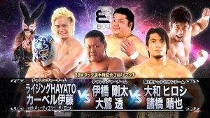 カーベル伊藤 / 秋山準 / 大森隆男 vs 中島洋平 / 岡田佑介 / 平日マスク